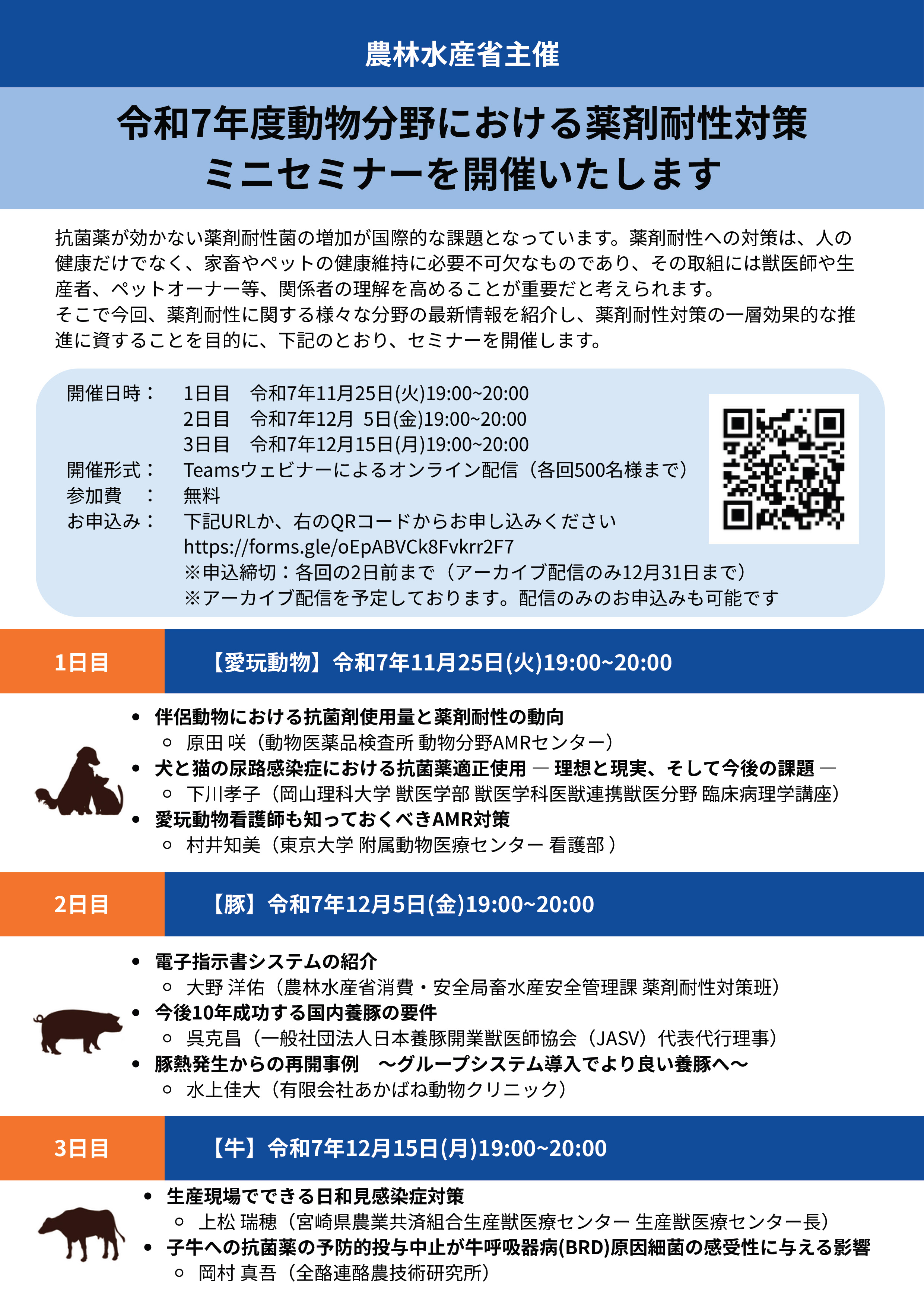 ■農林水産省が薬剤耐性対策ミニセミナーを11~12月にオンライン開催