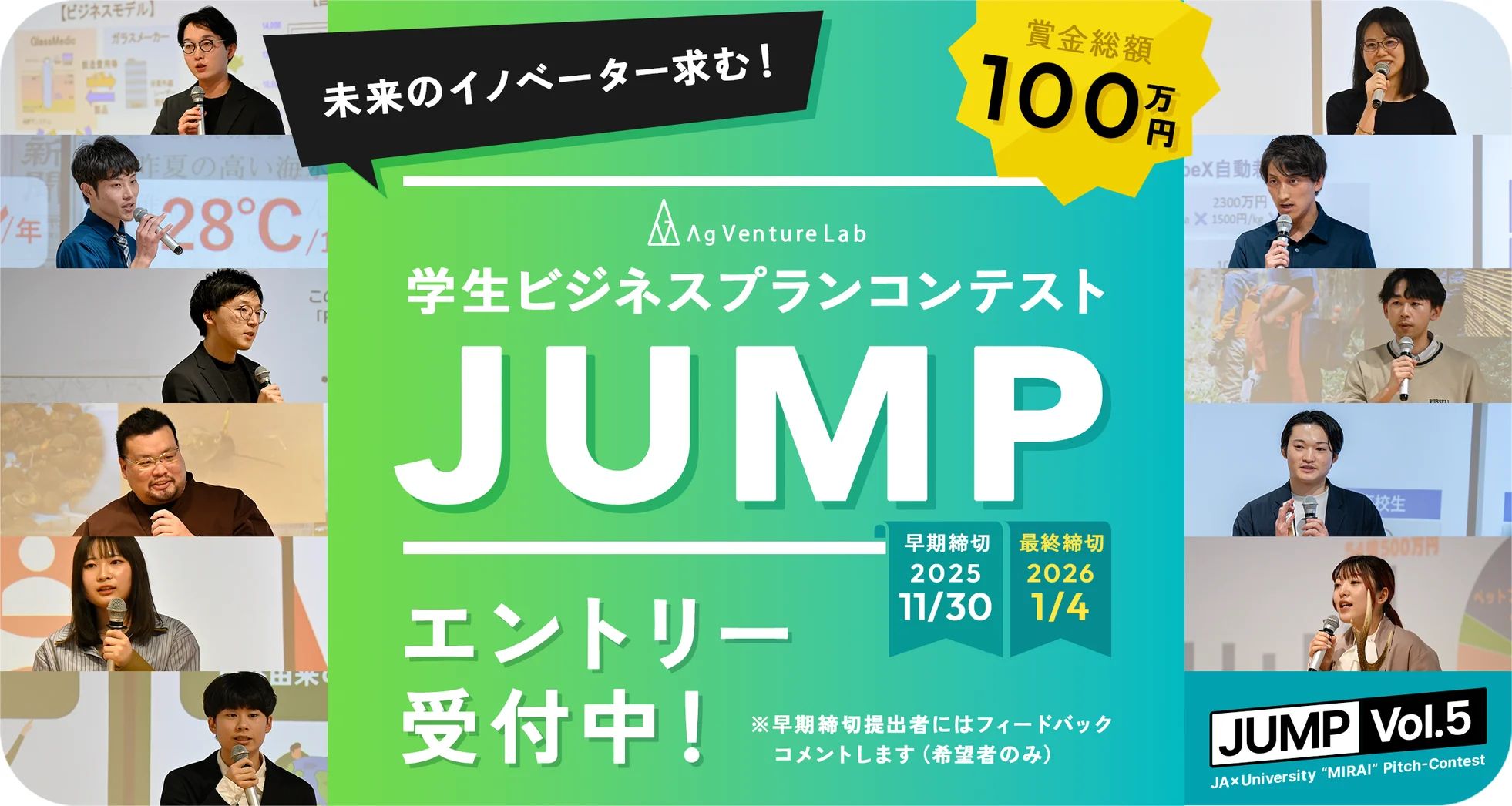 ■募集「学生ビジネスプランコンテストJUMP Vol.5」一般社団法人AgVenture Lab