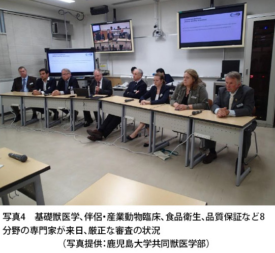基礎獣医学、伴侶動物臨床、産業動物臨床、食品・公衆衛生、品質保証、臨床獣医師(欧州獣医師会)、学生、審査チーム全体のコーディネーターの計8分野の専門家が来日、厳正な審査を行いました(写真4)。