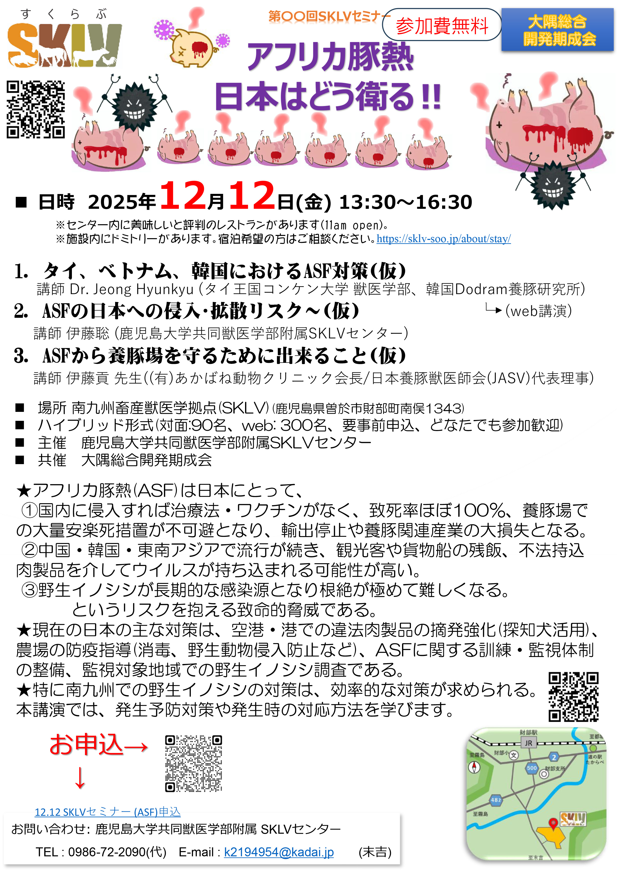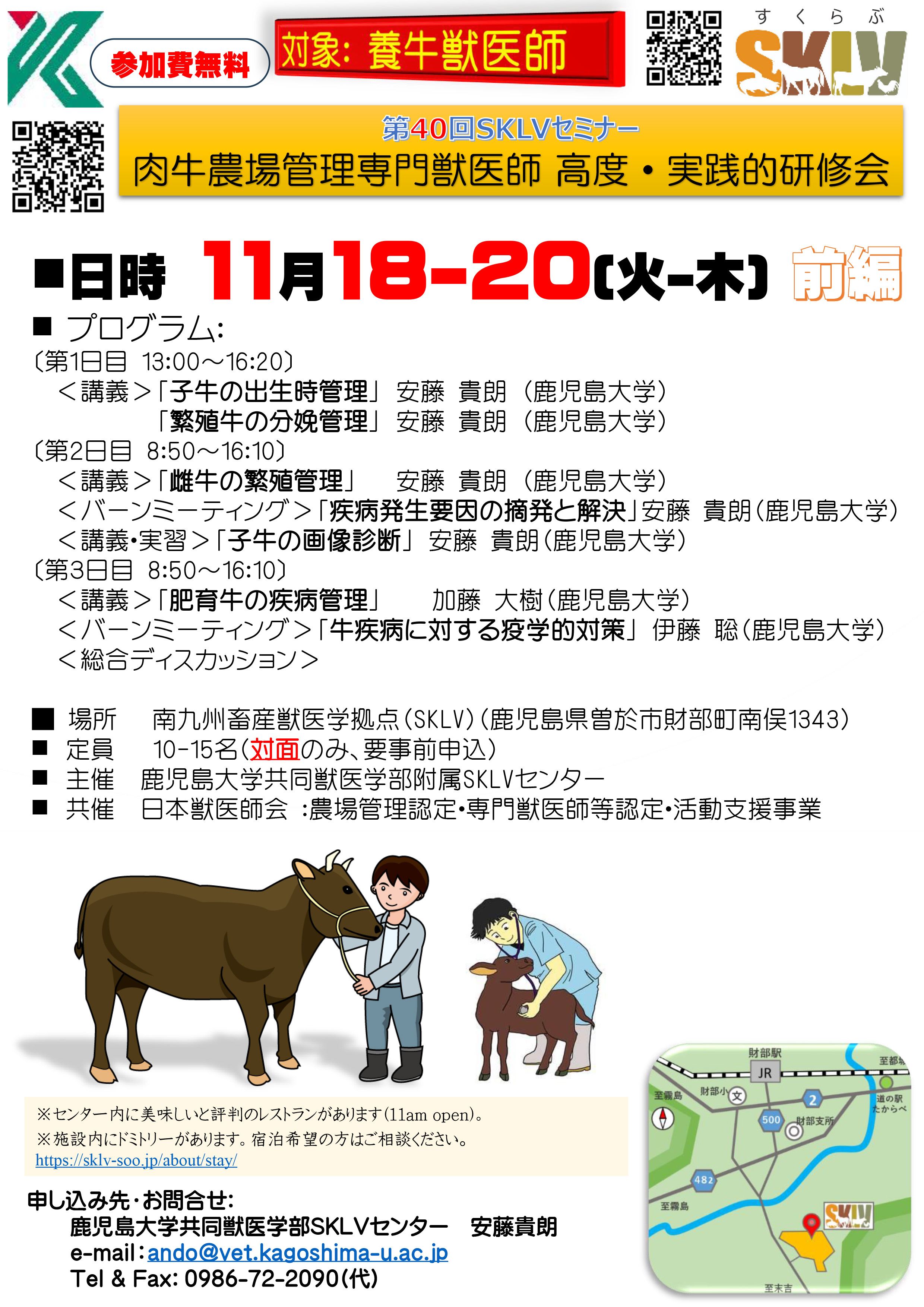 - 申込み:鹿児島大学共同獣医学部SKLVセンター 安藤貴朗先生