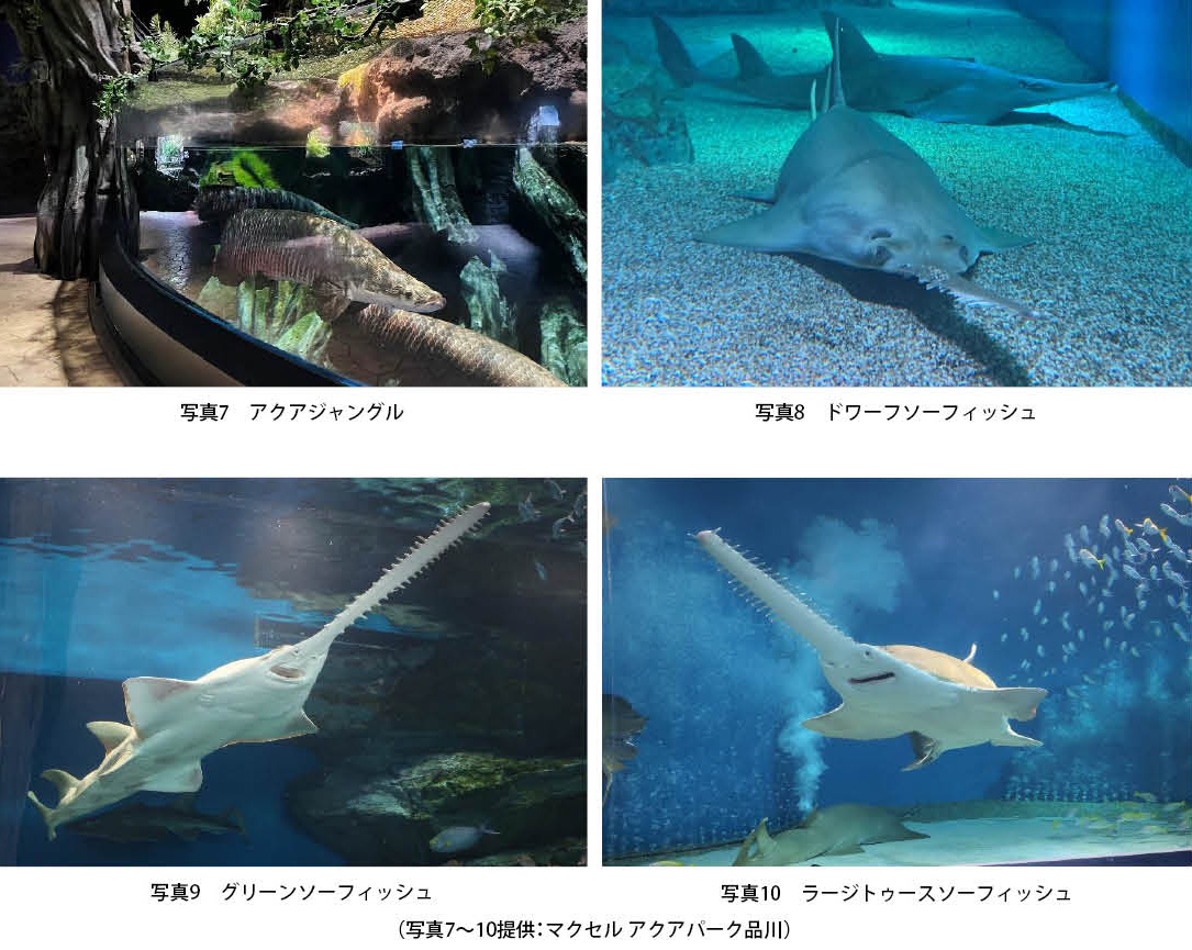 飼育されている動物として特筆すべきことは、トンネル型の水槽「ワンダーチューブ」で世界で唯一の展示となるドワーフソーフィッシュをはじめとした3種類のノコギリエイの仲間が飼育されていることです。飼育されているドワーフソーフィッシュ、ラージトゥースソーフィッシュ、グリーンソーフィッシュグリーンソーフィッシュの違いも今回取材を通じて理解することができました。