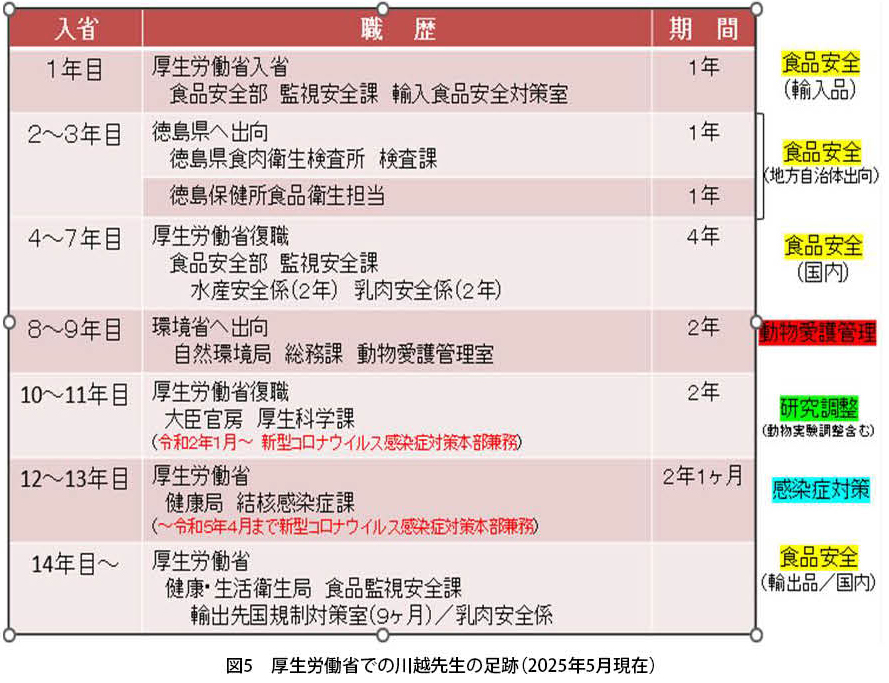 Q9.厚生労働省の獣医系技官として入庁されてから、現在までの足跡を教えてください。