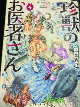 さらに地域の学校飼育動物への関わりが、全国的な広がりをみせているという小嶋先生の社会貢献もも、とても素晴らしいことだと思います。コミック『珍獣のお医者さん』(株式会社KADOKAWA)の第4巻(写真12)の鳥の診療部分は、小嶋先生が監修・取材協力をされており、これも一つの社会貢献でしょう。